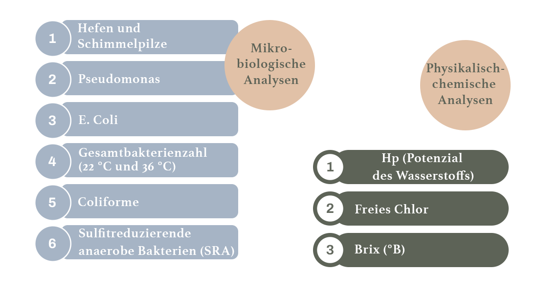 Boudjebel LAB bietet Ihnen eine umfassende Bewertung der physikalisch-chemischen und mikrobiologischen Eigenschaften Ihrer Produkte sowie der Produktionsumgebung. Diese qualitative Erkenntnis ermöglicht Ihrem Unternehmen fundiertere Entscheidungen hinsichtlich Rezepturen, Inhaltsstoffen (z. B. Kaliumsorbat, Glukose) oder Produktionsumgebungen.
