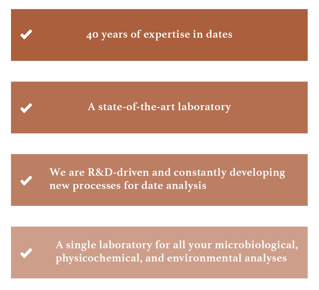 This laboratory assesses the microbiological quality of dates as well as the production environment, including work areas, surfaces, and processing atmospheres, to guarantee optimal food safety standards.