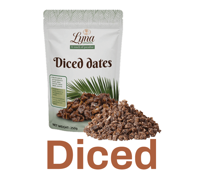 Processed and pitted, the dates are then diced in 5/10mm pieces.